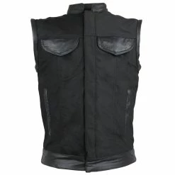 High Mileage HMM908 Mens Black Straight Bottom Motorcycle Leather Vest With Buffalo Nickel Snaps