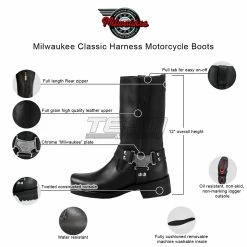 Mens Milwaukee Motorcycle Clothing Company MMCC Throttle Motorbike Biker Riding Black Leather Boots
