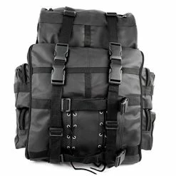 Jafrum SB1 Black Expandable Leather Motorcycle Luggage Travel Backpack Rucksack Sissy Bar Bag