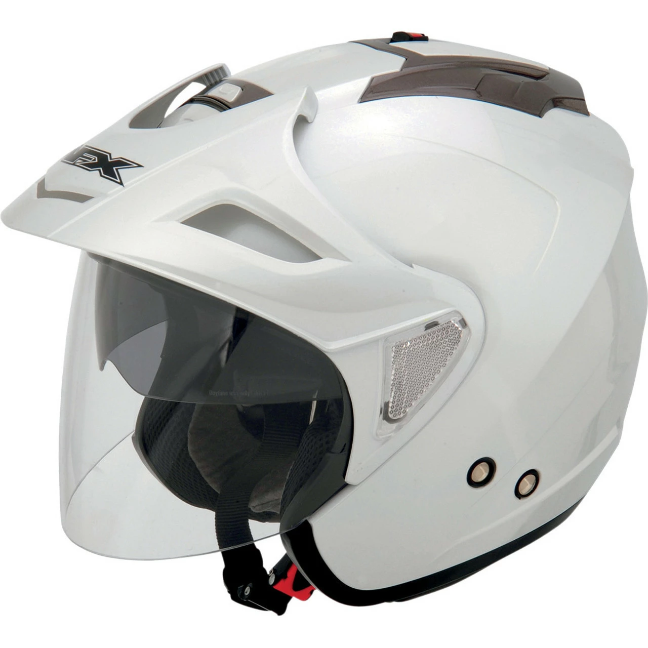 Enjoy the comfort and durability of the FX-50 Open Face Helmet. It has an aerodynamic shell making it lightweight. This helmet also has and internal sun shield for those sunny days and an advanced ventilation system to keep the rider cooler on the open road.