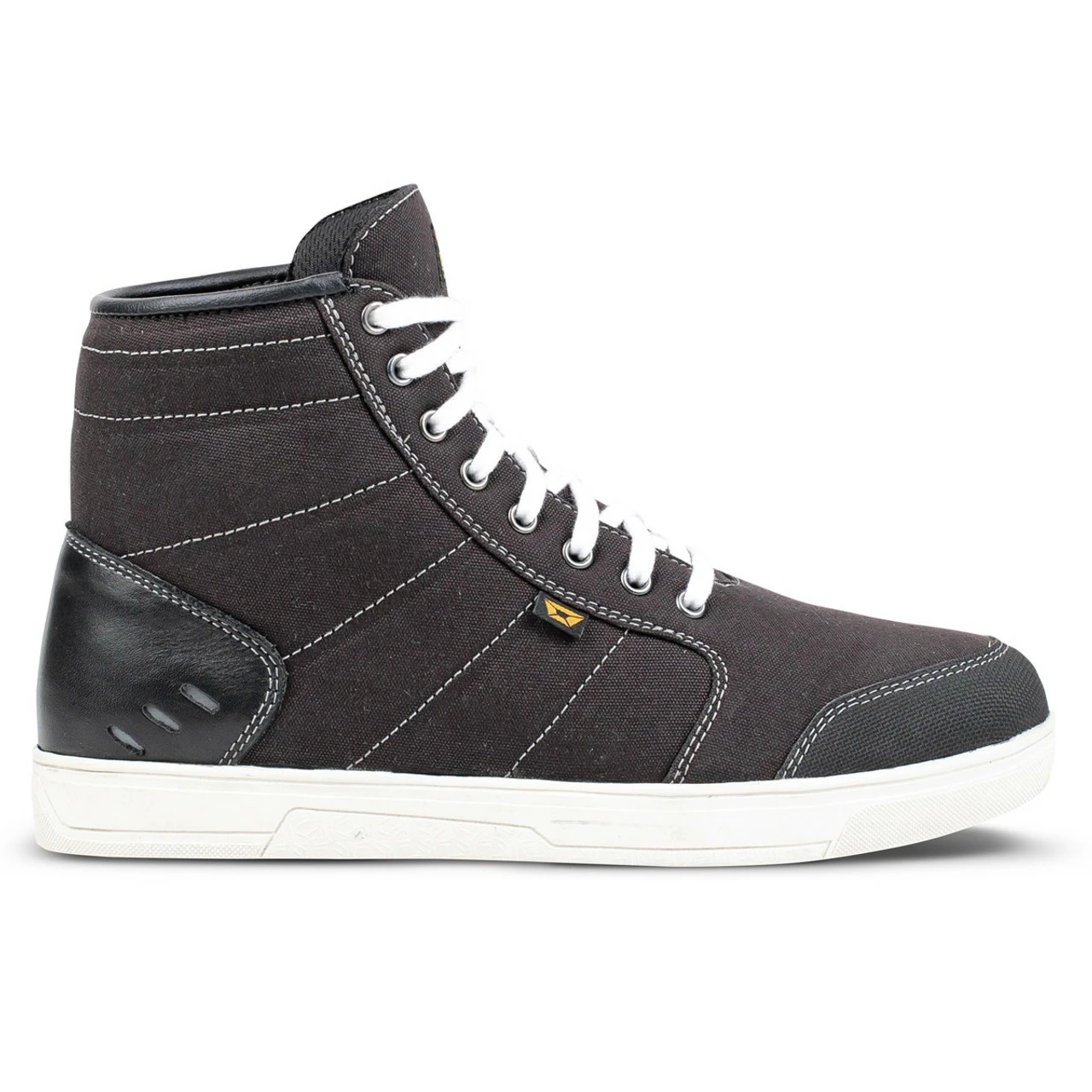 Take everything you love about your favorite canvas high-tops, add profuse amounts of protection, waterproofing, and extra comfort features, and you have just described “The Freshman” riding shoe. This shoe may be “The Freshman”, but is definitely not a “Chuck”.
