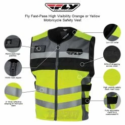 Fly Fast-Pass High Visibility Orange or Yellow Motorcycle Safety Vest.