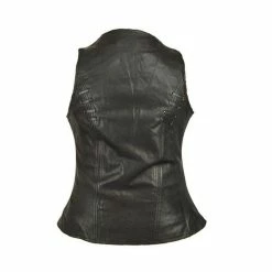 If you want a truly feminine look then try on the ladies lightweight top grain goatskin leather vest. The vest is accented with black stitching which offsets the grommet details and lace accents. There is plenty of room for those little knick-knacks that the ladies love to carry. Also, this vest comes equipped with a conceal carry pocket with elastic conceal carry and ammunition fittings so she can step out well-protected and no one will be the wiser.