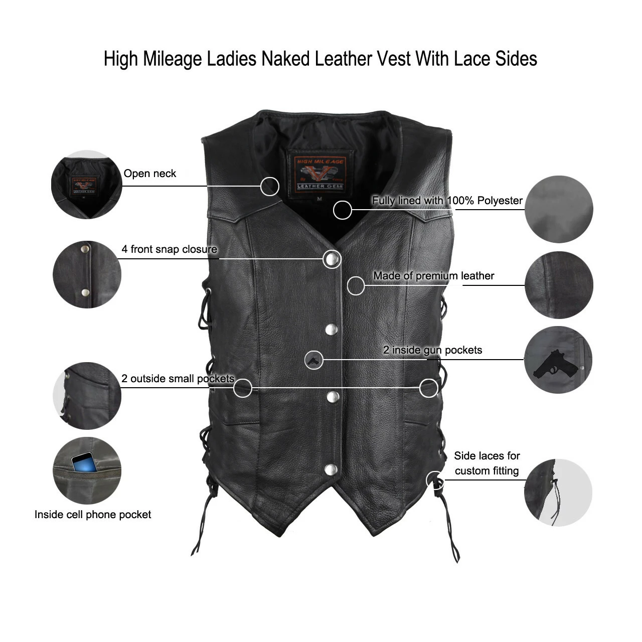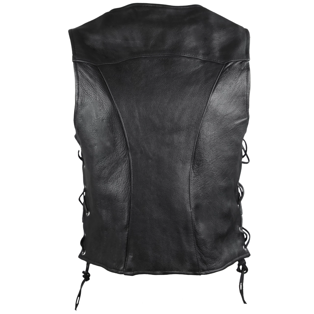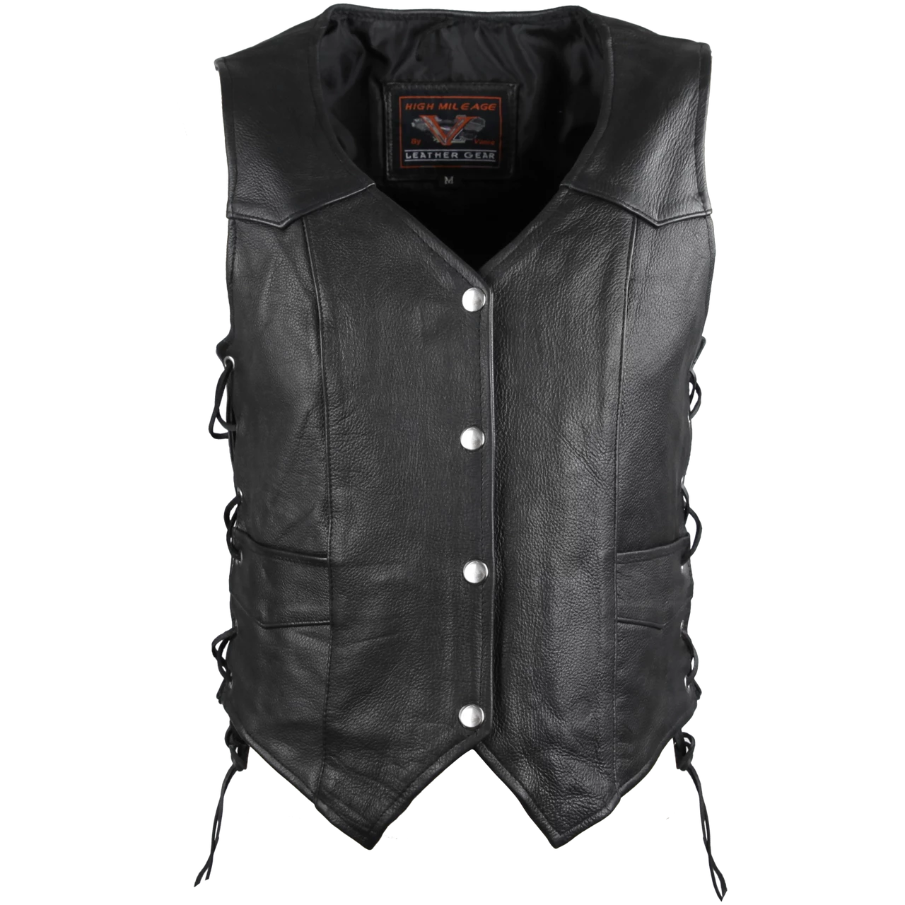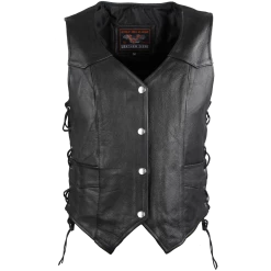 High Mileage HML1040 Womens Black Premium Cowhide Lace Side Biker Leather Vest.