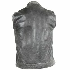 High Mileage HMM914DG Mens Premium Cowhide Distressed Gray SOA Style Biker Club Leather Motorcycle Vest.