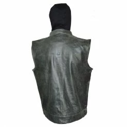 High Mileage HMM914HDG Mens Premium Cowhide Distressed Gray SOA Style Biker Club Leather Motorcycle Vest With Hoodie.