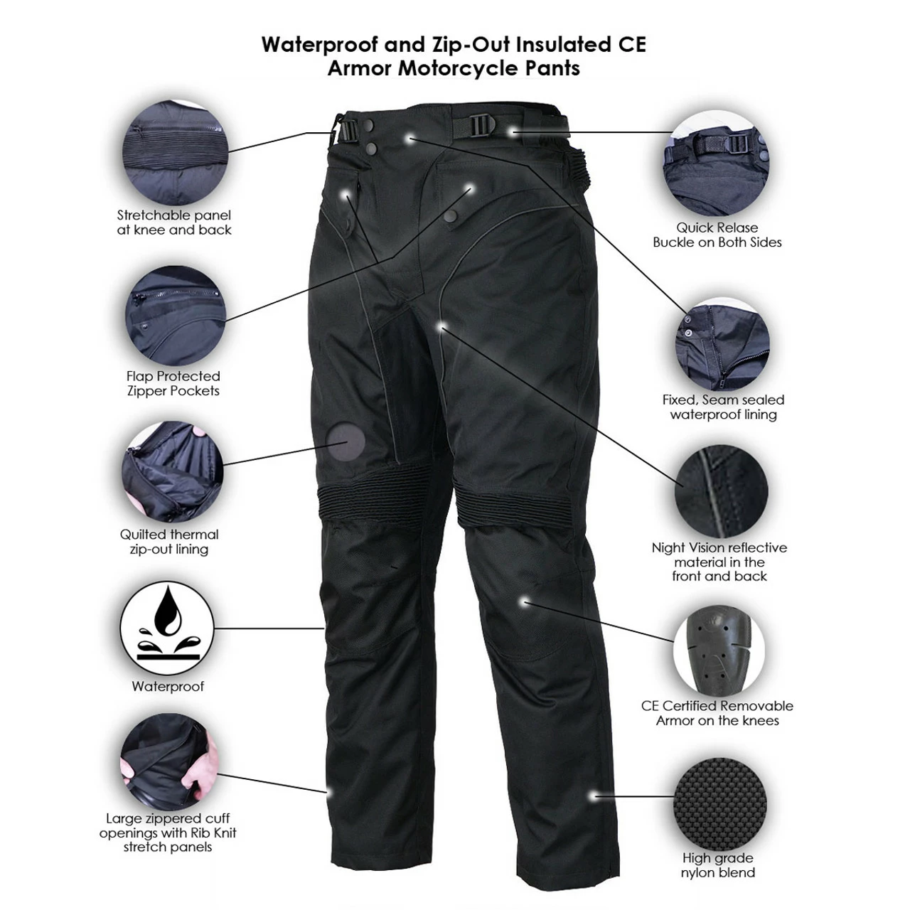 Waterproof and Zip-Out Insulated CE Armor Motorcycle Pants.