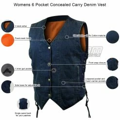 Jafrum LV775 Women’s Black or Blue Six Pocket Concealed Carry Denim Vest.