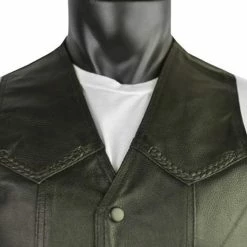 Enjoy this classic biker leather vest with detailed braided accents and single panel great for patches. This is a good quality leather vest which will last for many years