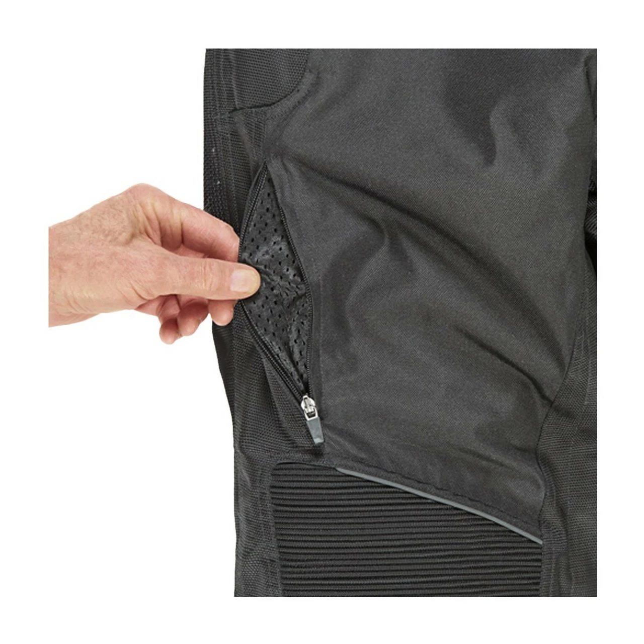 - Two front thigh zipper vents plus two rear exhaust zipper vents