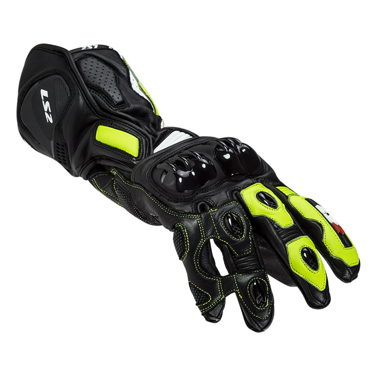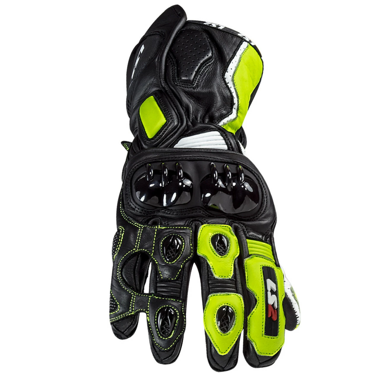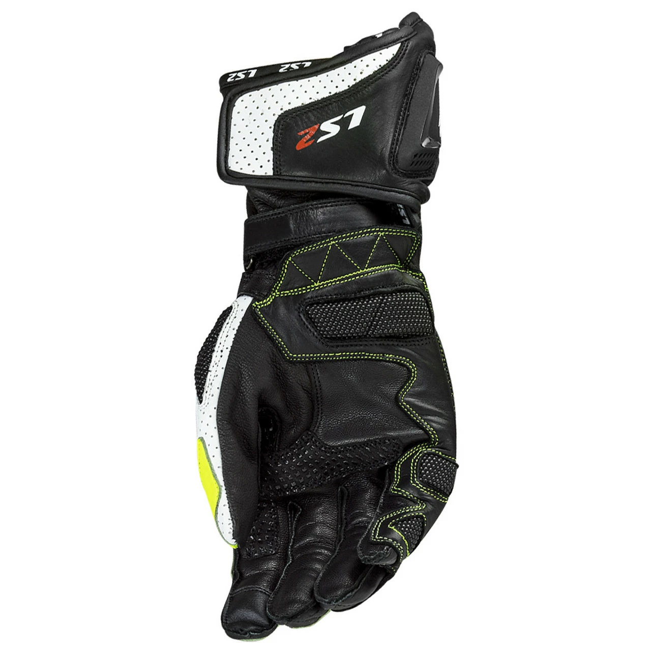 The LS2 SWIFT glove, is made of 60% cow leather and 35% goat leather, which features Superfabric inserts, a highly technical material capable of increasing the elasticity of the glove and at the same time, abrasion resistance. An essential element to give maximum confidence on the track is comfort, made possible through the secure hook and loop closures on the wrist, the pre-curved fingers and the leather bellows, which facilitate the grip on the handlebars.