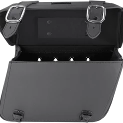 - Made of a durable combination of materials, including Saddlemen’s Leathertec, chrome-plated brass and a tough plastic frame