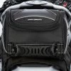 The Saddlemen Drifter Slant Saddlebags Throw-over are available in three sizes. The large is 15.5”L x 9.5”H x 5”D; the Jumbo is 17.5”L x 10.5”H x 6”D. And then there is the Extra Jumbo size for those times when you’ve got a lot to gear to take with you. That bag measures 22”L x 10.5”H x 7”D. As usual, Saddlemen has added some well-thought-out features to these bags. For example, the height of the lid is adjustable, and these bags have also been designed with a quick release and a rear carrying handle so that you can easily take them with you when necessary. These handsome bags, which are crafted from a durable synthetic leather, are slanted so that they work well with dual shock bikes.