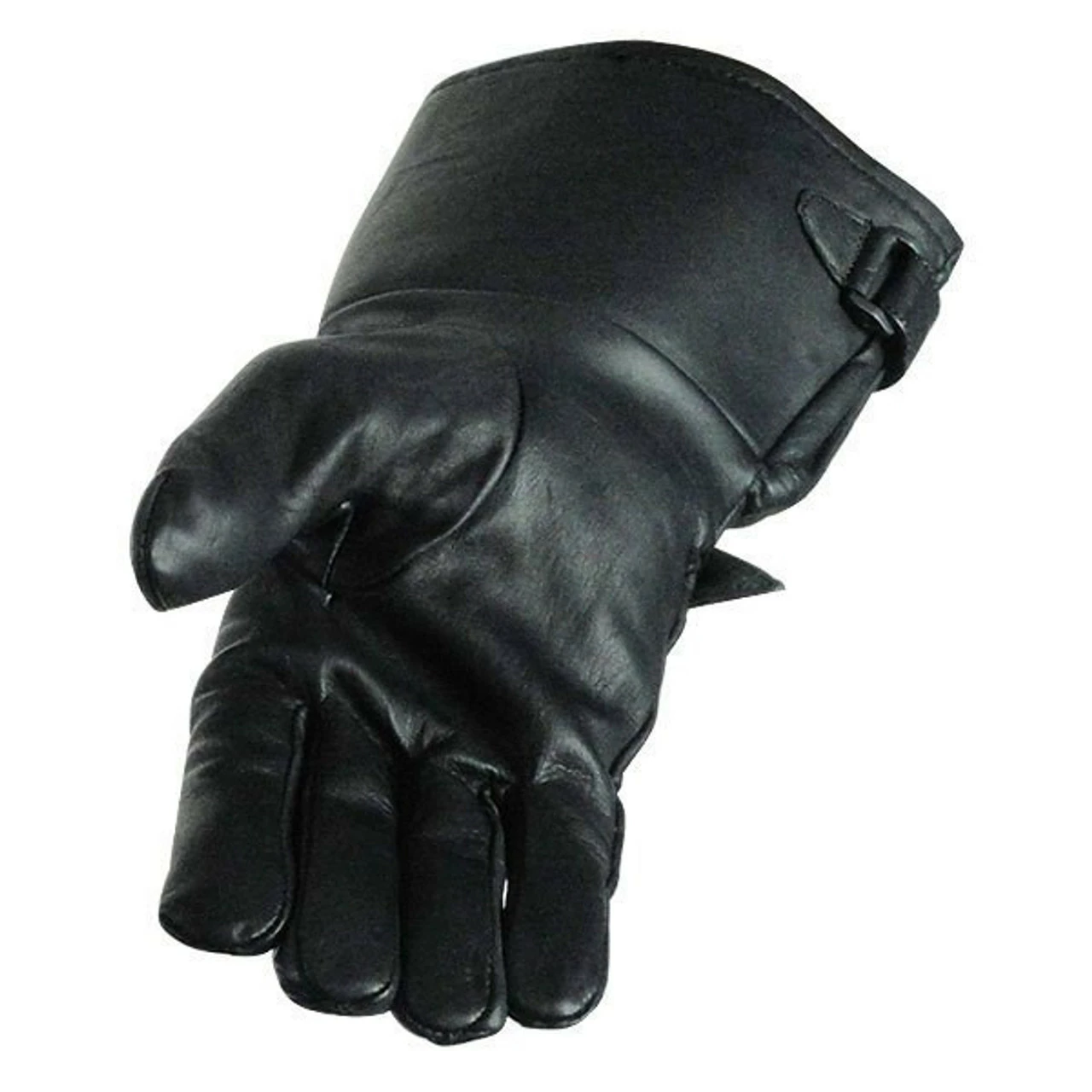 Vance GL2064 Mens Black Lined Biker Leather Motorcycle Gauntlet Gloves.