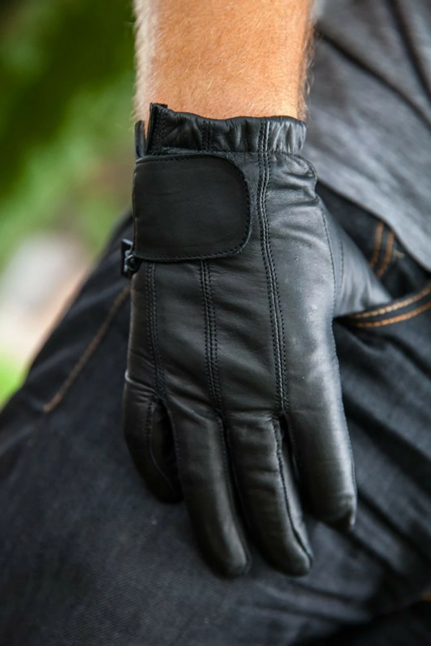 - The new real genuine leather motorcycle riding driving gloves with gel palm and velcro. These are good quality gloves which will last long.