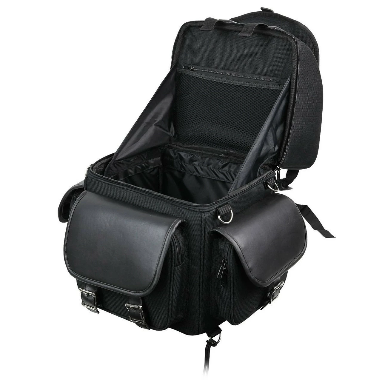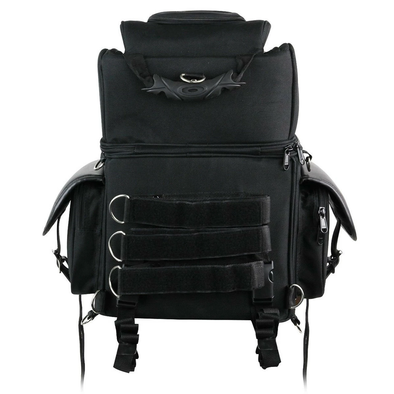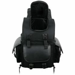 Vance SB521 Black Five Large Outer Pocket Motorcycle Luggage Touring Travel Sissy Bar Rack Bag.