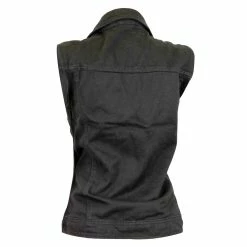 Vance VB1050BK Women’s Black Denim Motorcycle Vest With Studded Collar.