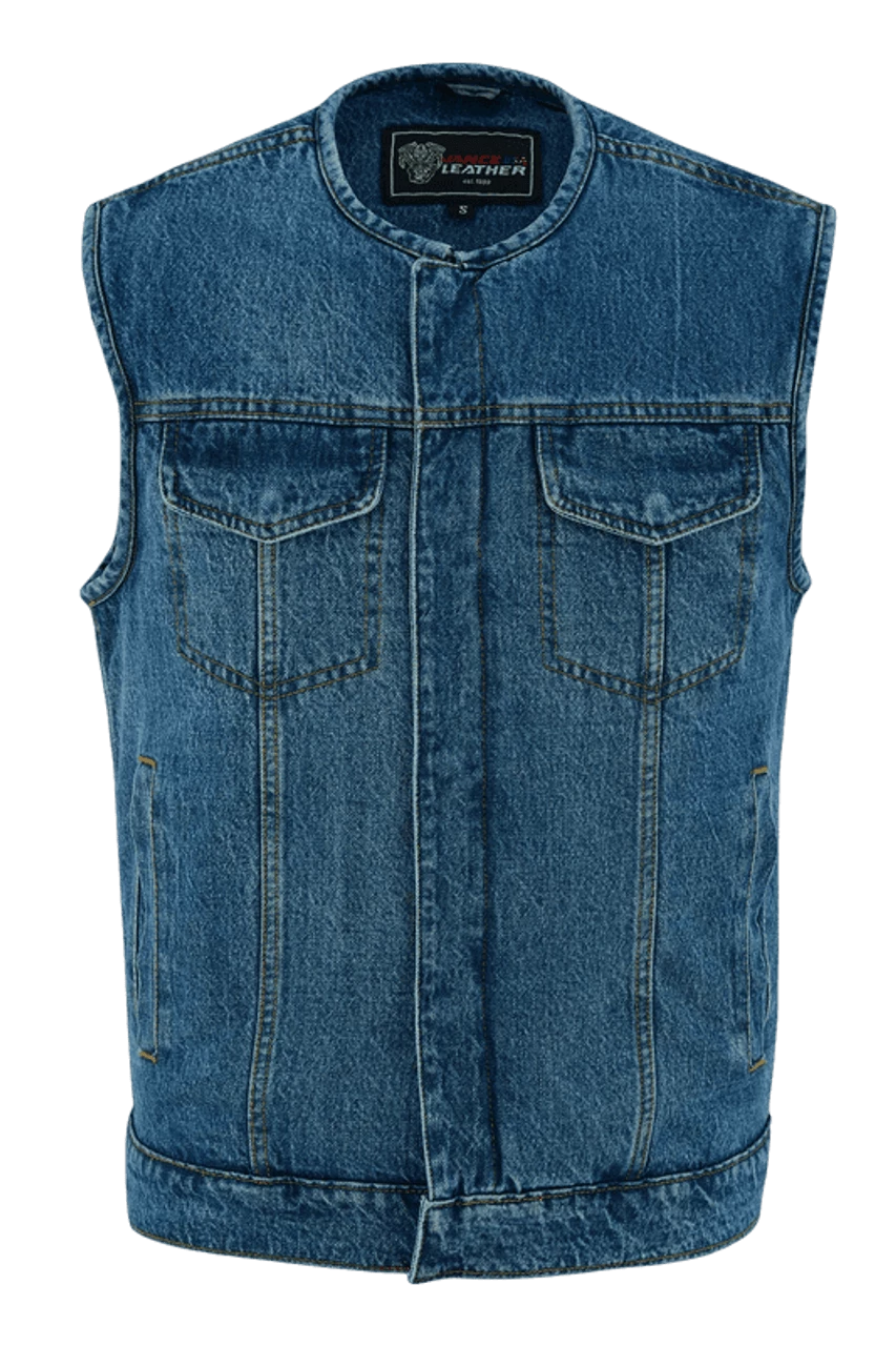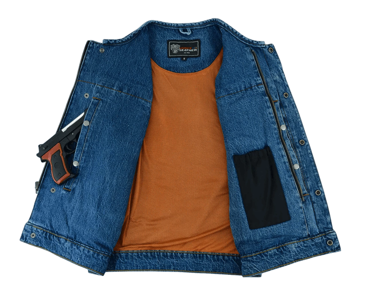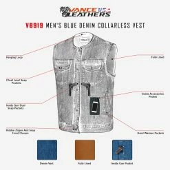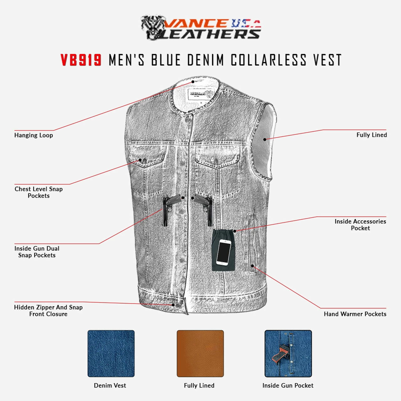 Vance MV111 Mens Black Deep Pocket Leather Motorcycle Biker Vest