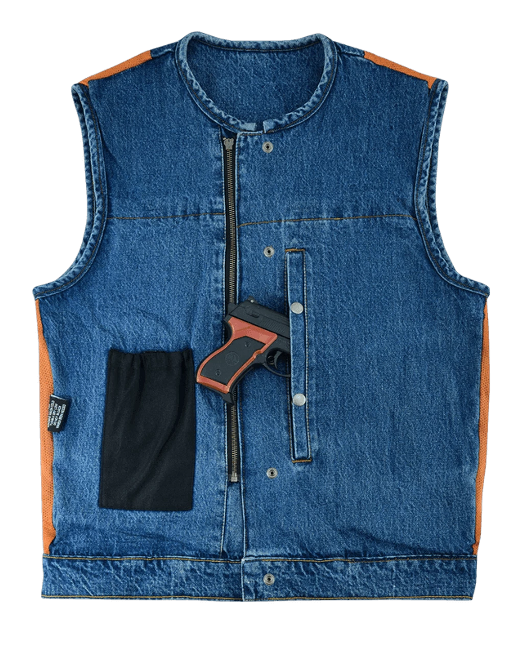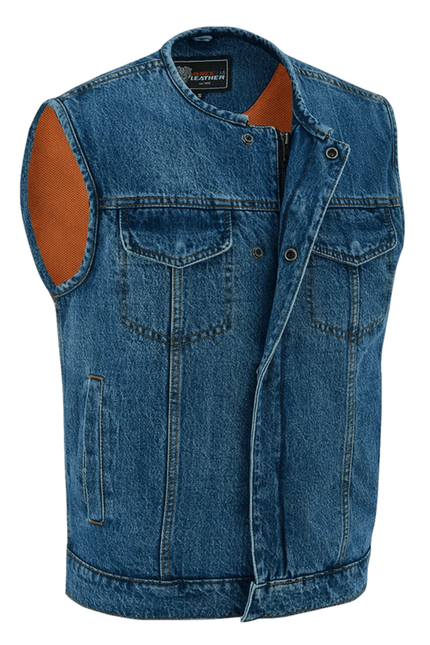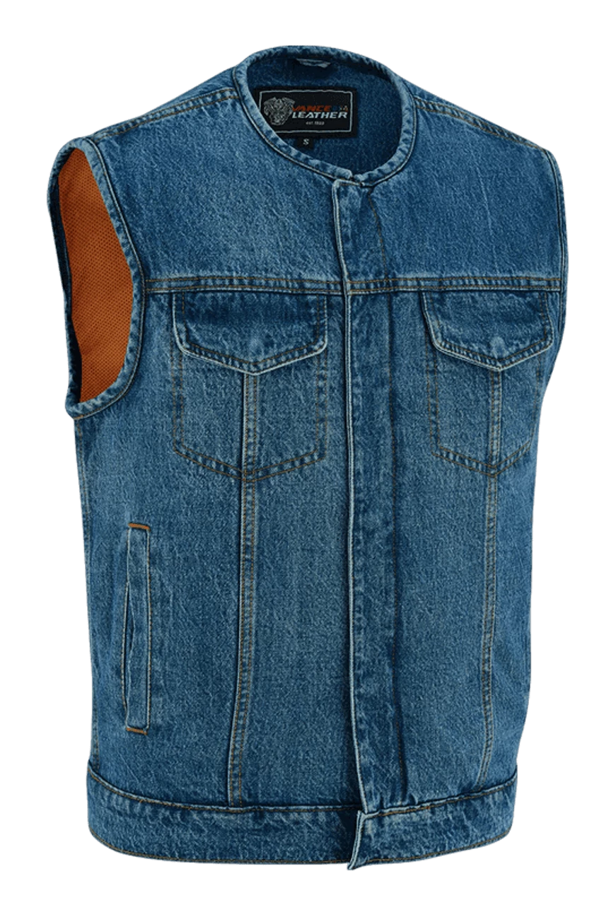 Vance MV111 Mens Black Deep Pocket Leather Motorcycle Biker Vest