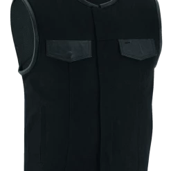 - Collarless Club style vest covered snaps, and hidden zipper