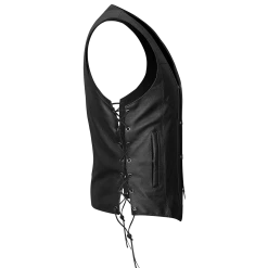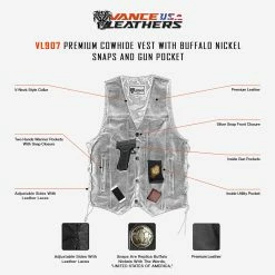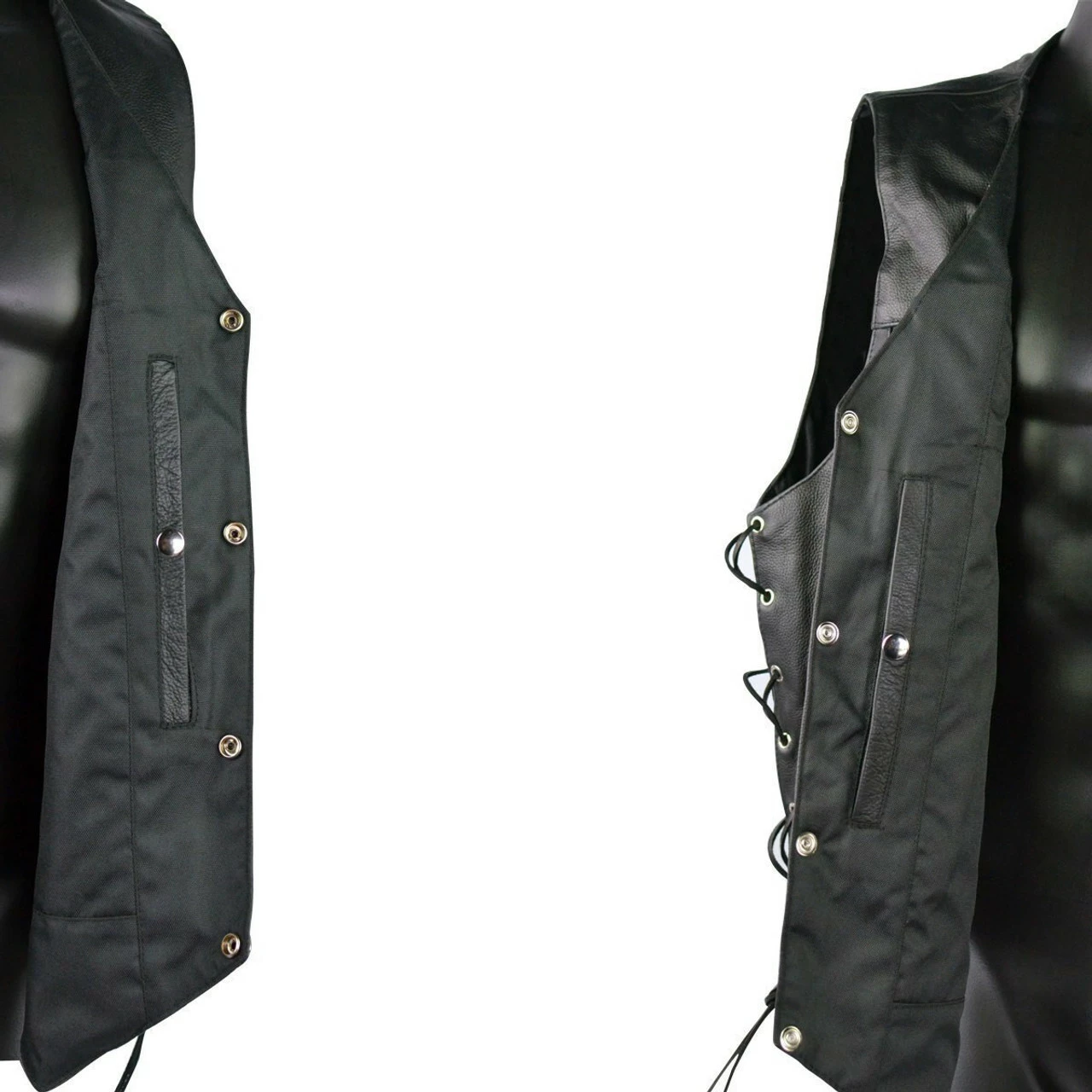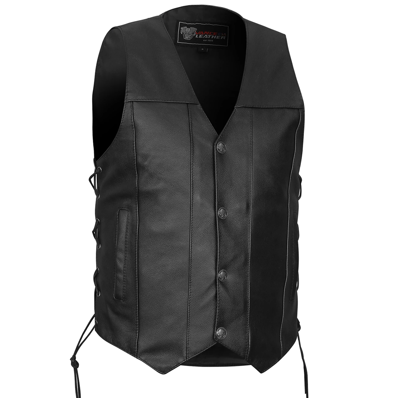 Vance VL907 Mens Black Premium Cowhide Leather Biker Motorcycle Vest with Buffalo Nickel Snaps and Conceal Carry Pocket.