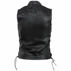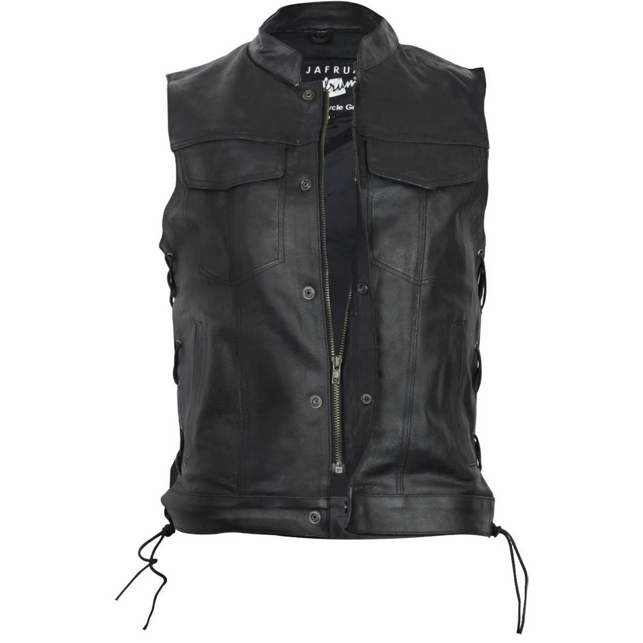 Vance VL912S Mens Black SOA Club Style Leather Motorcycle Vest With Side Laces.