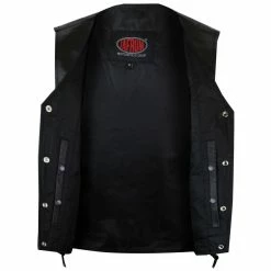 Vance VL939S Mens Black Straight Bottom Leather Motorcycle Vest.