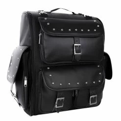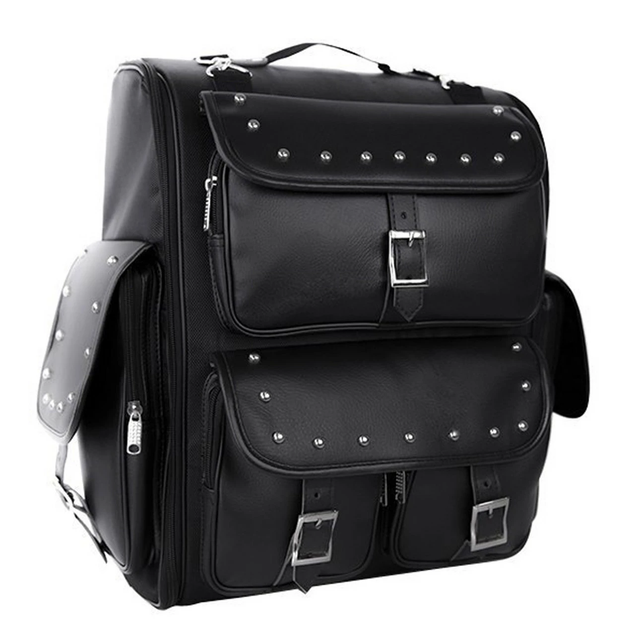 Vance VS1349 Black Studded Large Deluxe Motorcycle Luggage Travel Touring Sissy Bar Bag.