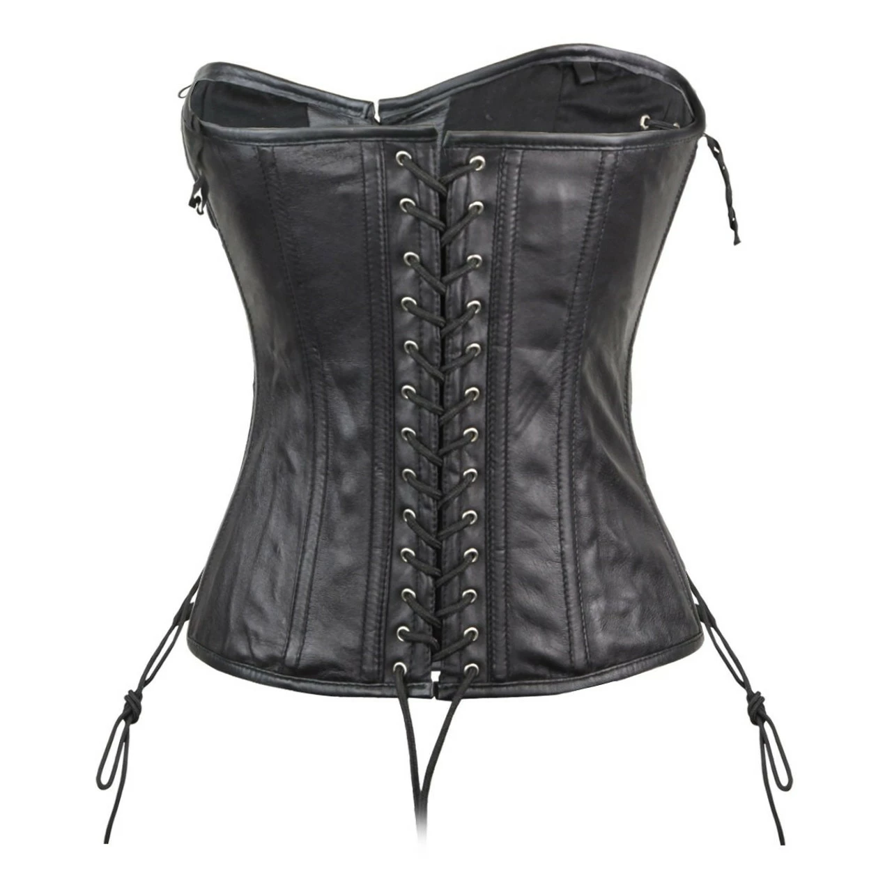 Womens Black Premium Soft Lambskin Side Lace Leather Halter Top Corset.
