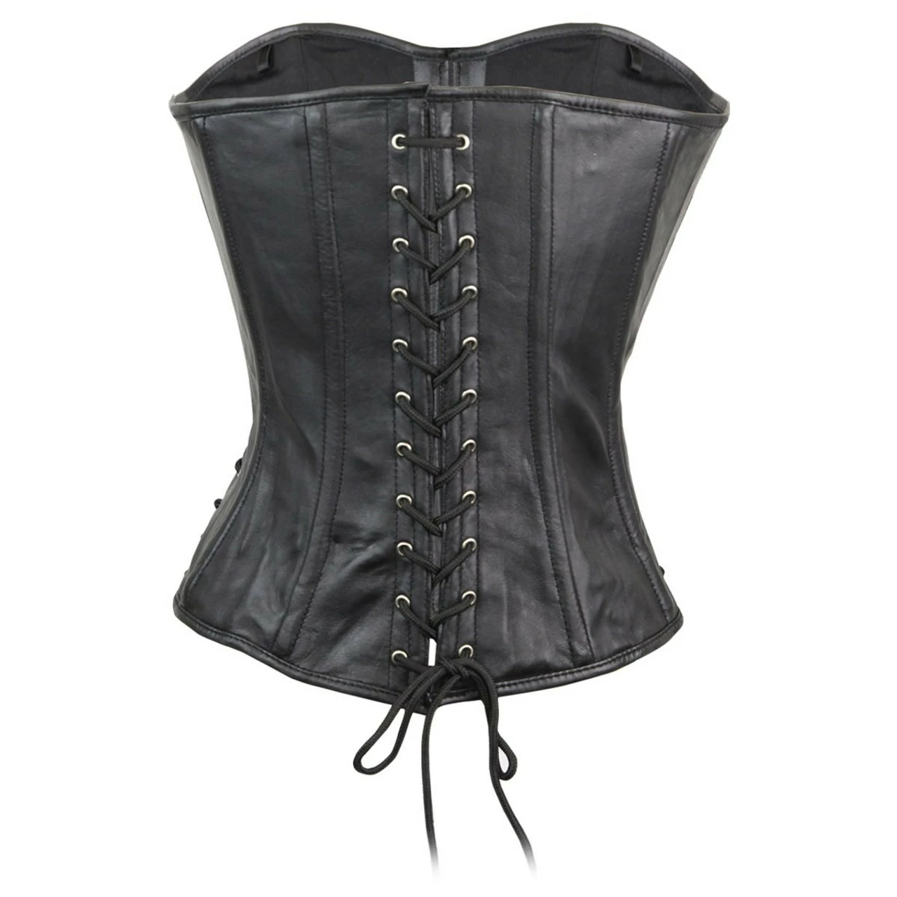 Womens Black Premium Soft Lambskin Zipper Front Side Lace Leather Halter Top Corset.