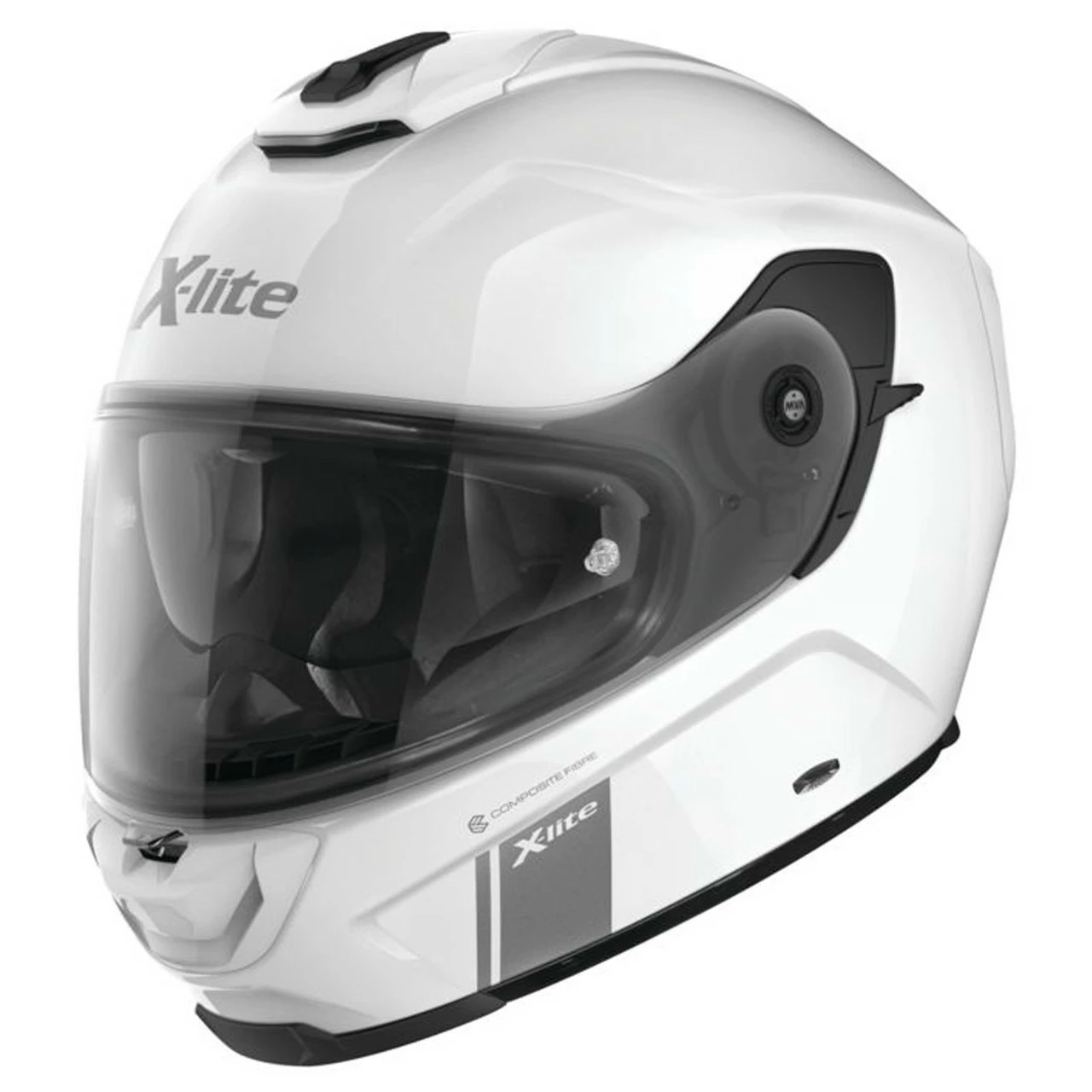 The X-903 is X-Lite’s new top of the range touring, full-face helmet developed from a completely renewed approach in concept, design, and manufacturing. Currently available in composite fiber, it has three outer shell sizes which enables this helmet to have the smallest overall profile and still maintain true sizing. The Ultra-wide visor has tilting functionality which allows for greater coverage from the Anti-fog Pinlock®, reduces the risk of unwanted opening/closing of the visor, as well as creating a better seal to keep out dust and water. An innovative quick visor assembly mechanism, (Magnetic Visor Assembly-MVA) allows for fast and precise positioning of the visor, making removing and replacing much easier. Using their racing knowledge and experience, X-Lite has used Carbon Fitting Comfort padding with net construction to assist the movement of air around the head while the carbon filaments act as thermo-regulators, thus keeping the rider’s head as comfortable as possible. Nolan’s Emergency Release System (NERS) allows emergency teams to remove the cheek pads from the helmet while it is still being worn, by simply pulling the red tapes attached to the front of the pads themselves. The top liner is equipped with a Liner Positioning Control (LPC) which allows the adjustment of the helmet on the head by moving the helmet up on the forehead. Add to these features the VPS internal adjustable sunscreen, and renewed easy-fit N-Com® predisposition, and you have the perfect luxury touring helmet in the X-903.